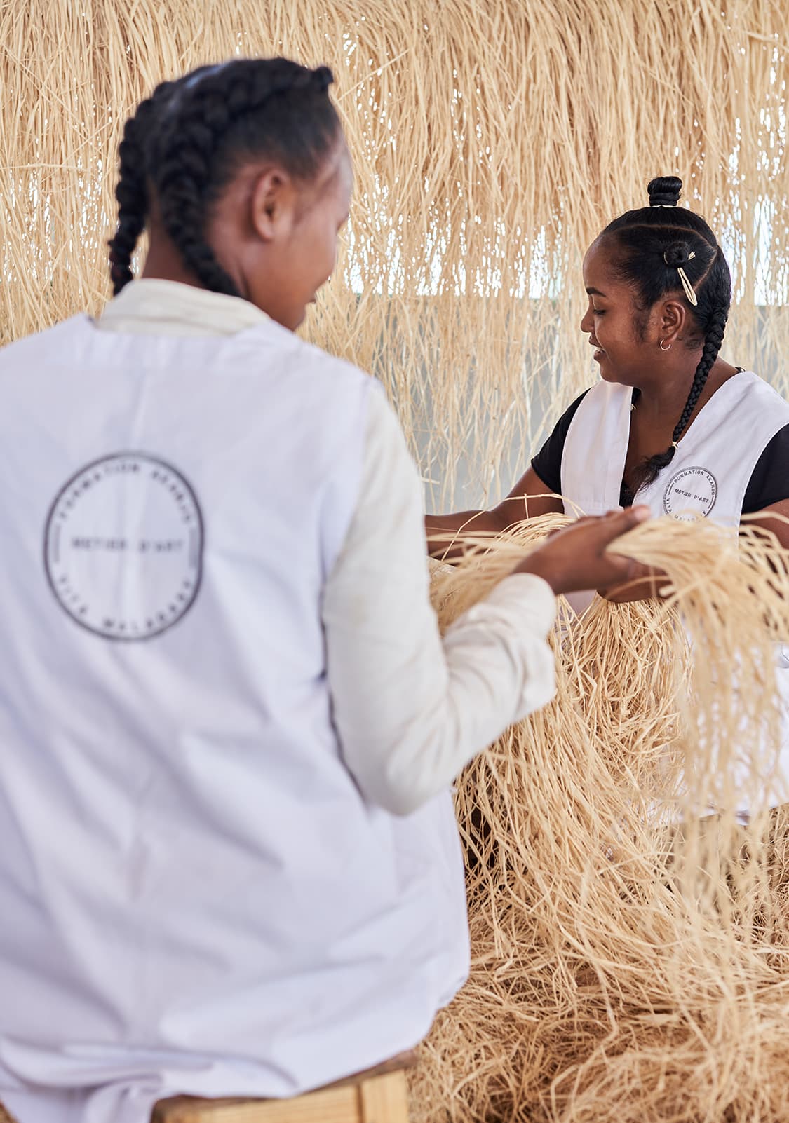 Les sacs ASOAN incarnent un savoir-faire d’exception, fruit de l'héritage de l’artisanat malgache et des formations internationales. Chaque pièce est réalisée à la main, selon des techniques exigentes et rigoureuses qui s’adapte aux exigences du marché haut de gamme. L’utilisation du raphia, matière naturelle prisée pour sa résistance, son naturel et sa beauté, confère aux créations ASOAN une singularité qui séduit le monde du luxe. Ce savoir-faire unique a d’ailleurs attiré l’attention de Cheval Blanc Seychelles, qui a fait confiance à ASOAN pour la création d’une ligne de gifts exclusifs en raphia pour sa clientèle VIP.